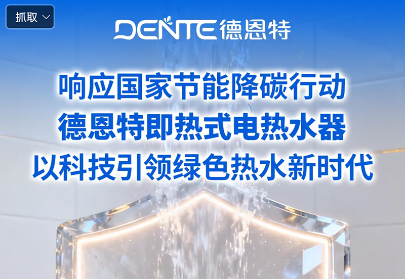 国务院印发《2024—2025年节能降碳行动方案》(国发〔2024〕12号),明确提出要加快重点用能设备能效提升,推动绿色消费与低碳生活方式的普及。作为家庭日常能源消耗的重要设备,电热水器的能效水平直接影响全社会节能减排的成效。在政策引导与市场需求的双重驱动下,传统储水式电热水器因待机保温能耗高、热效率低等问题,正面临全面升级的挑战。 德恩特即热式电热水器凭借前瞻性的技术布局与系统化的产品设计,精准契合国家绿色发展战略,成为推动行业低碳转型的重要力量,助力“双碳”目标在民生领域的落地实践。
